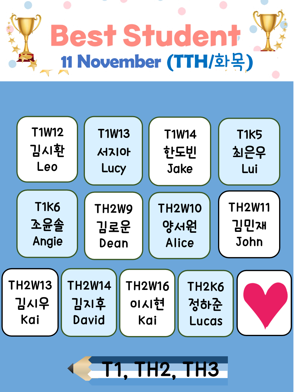 각 Class별로 최선과 열정을 다하는 학생들이 선정되었는데요!